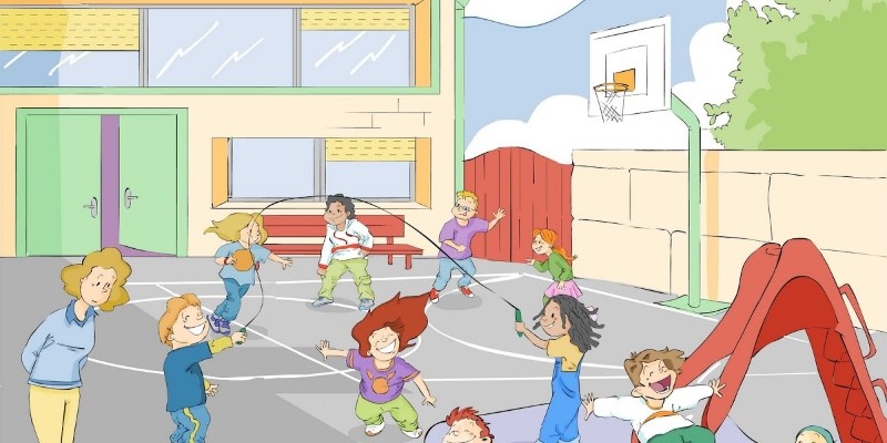 The graphic section is correct and fulfills the function of accompanying the environment of educational establishments. Not only the classrooms and interior spaces but also the exterior ones.