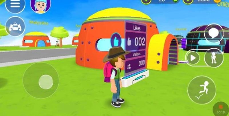 Walking through your neighborhood you will discover in the distance the lights of the city, where the real fun is. Go to it and interact with all the objects and other neighbors in your neighborhood, with this you will be able to level up and get more money. In the metropolis they have a lot of stores where you can buy all kinds of things, such as juice, a pizza, get a pet, you can go to school, visit a museum and countless places to discover. If you overcome the challenges that are marking you in the form of mini-games, you will also get coins, such as collecting fruit in a certain time. You can also throw these challenges on your virtual friends, with whom you will also have to increase the degree of friendship.
